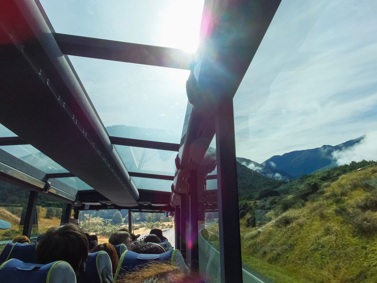 バスは天井も透けていて、外の景色が楽しめました。日本人のアキナさんというガイドさんもニュージーランドについて、観光地についていろんなお話ししてくれて楽しかったです!