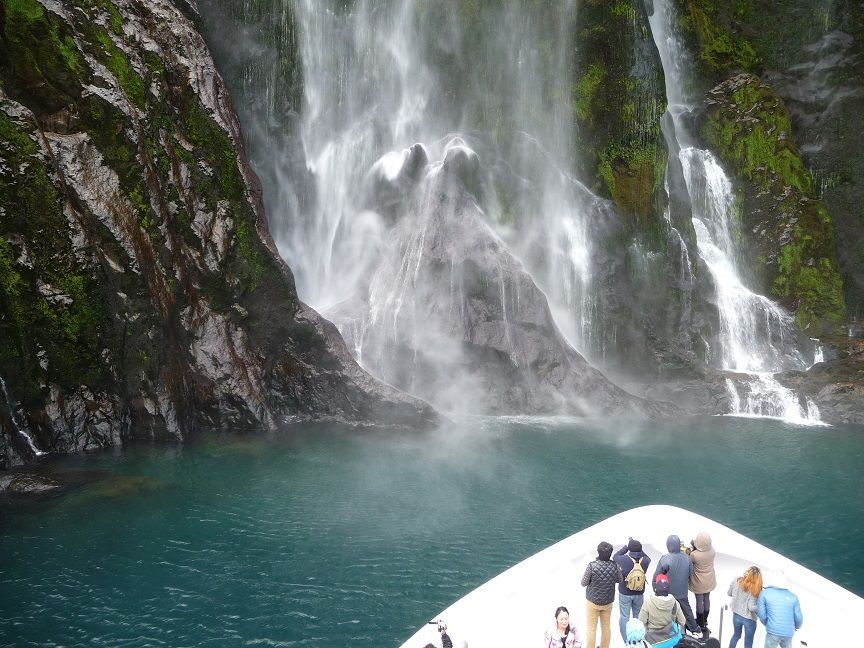 ミルフォードサウンドへの乗船も同じ日本人スタッフがマイクを通してガイドをしてくれます。