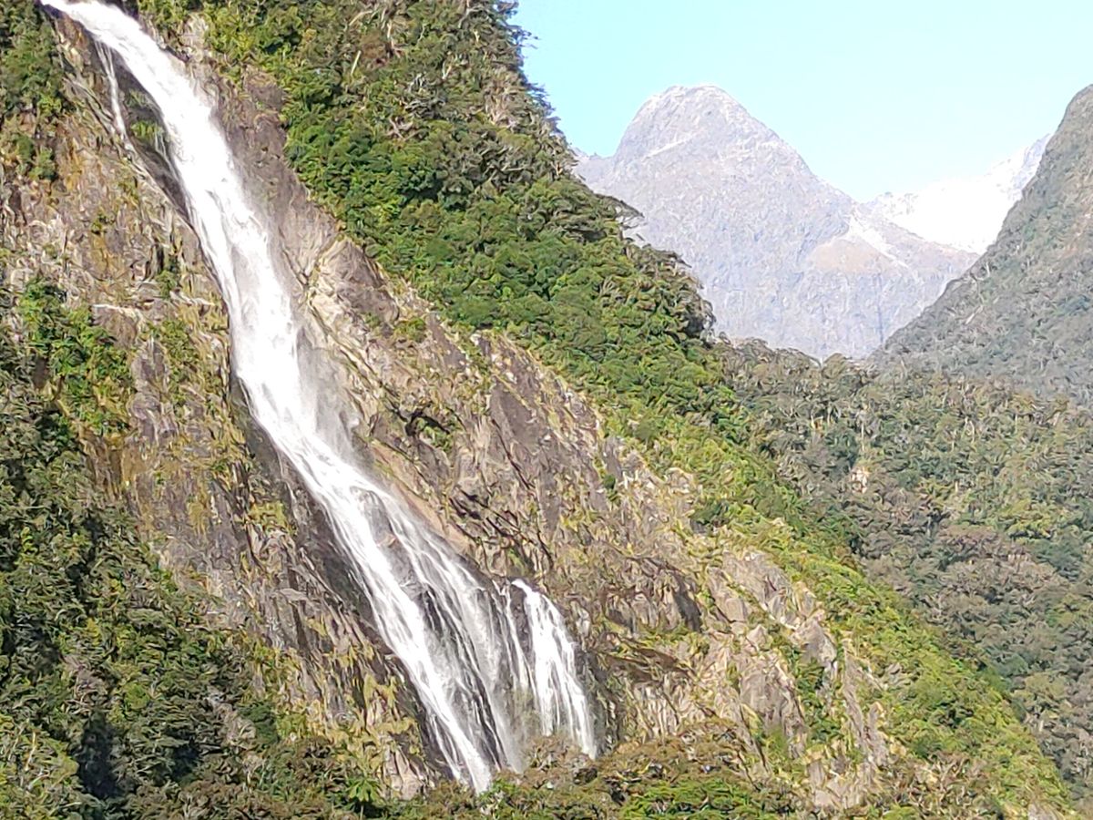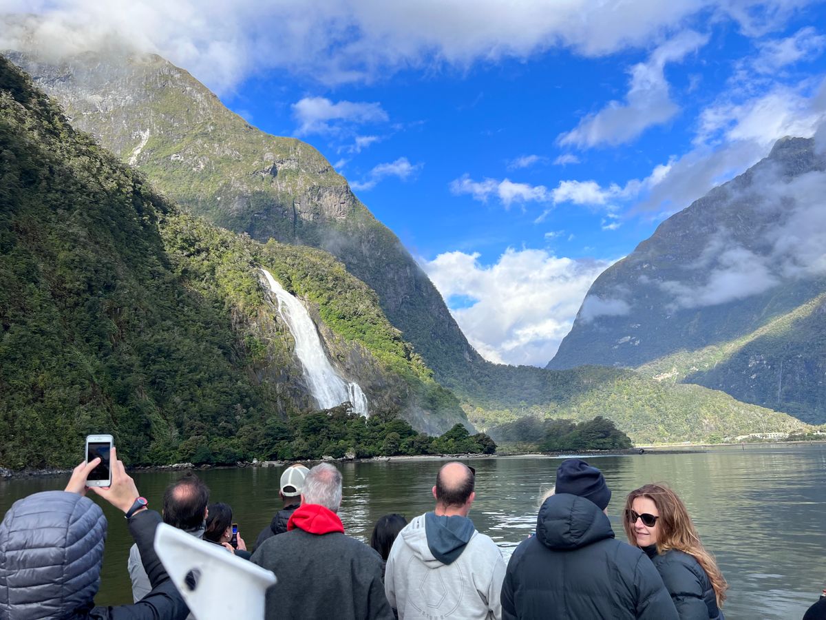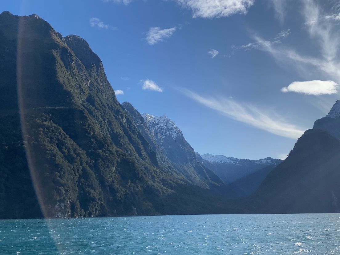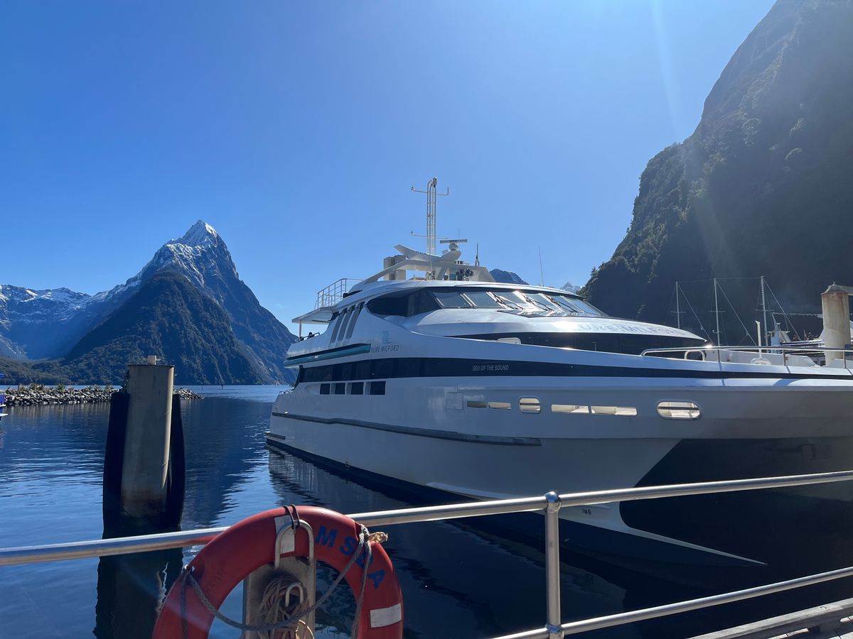 ミルフォードサウンドに到着後1時間ほどフィヨルド観光。雄大な景色と滝に感動しました。私が参加した日は快晴で、先頭の屋外デッキが満員になるほどでしたが、後方デッキは比較的空いているので、おすすめです!
