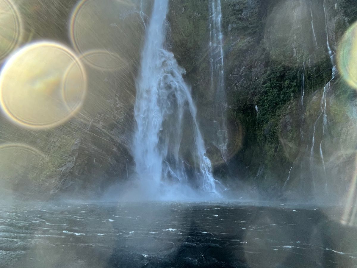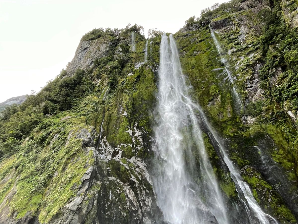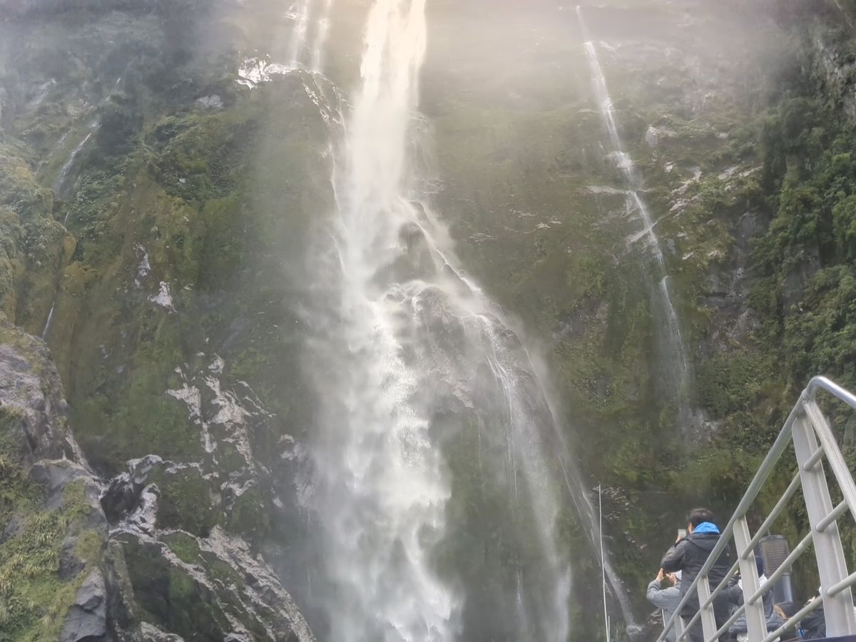 後半はスターリング滝やボーウェン滝の間近まで船を寄せてくれてしぶきを浴びたり、虹を見たりすることができました。