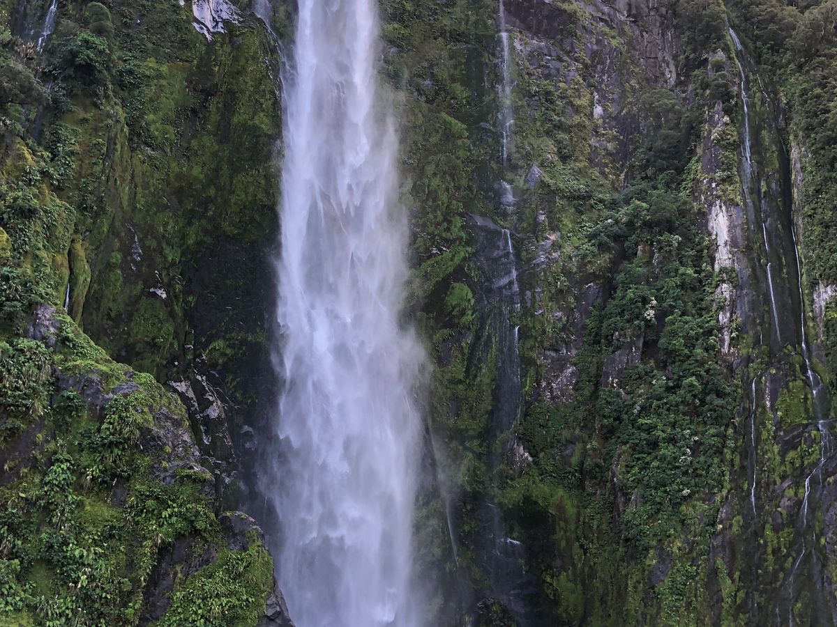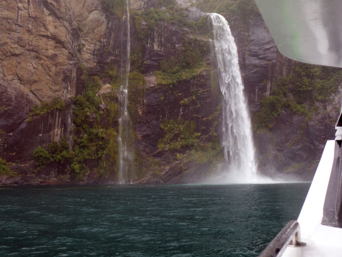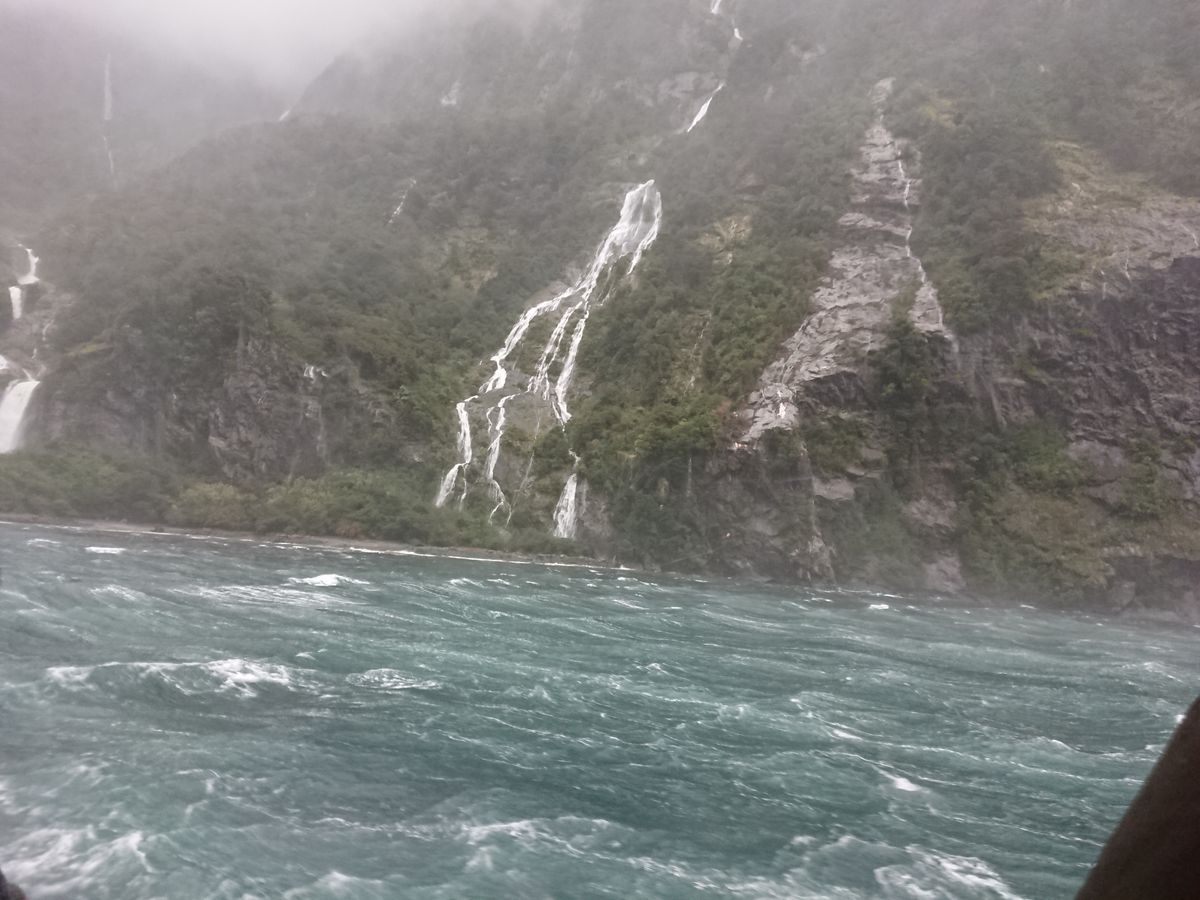 雨のおかげで、ミルフォードサウンドクルーズのときは、美しい白い滝をたくさん見ることができました。