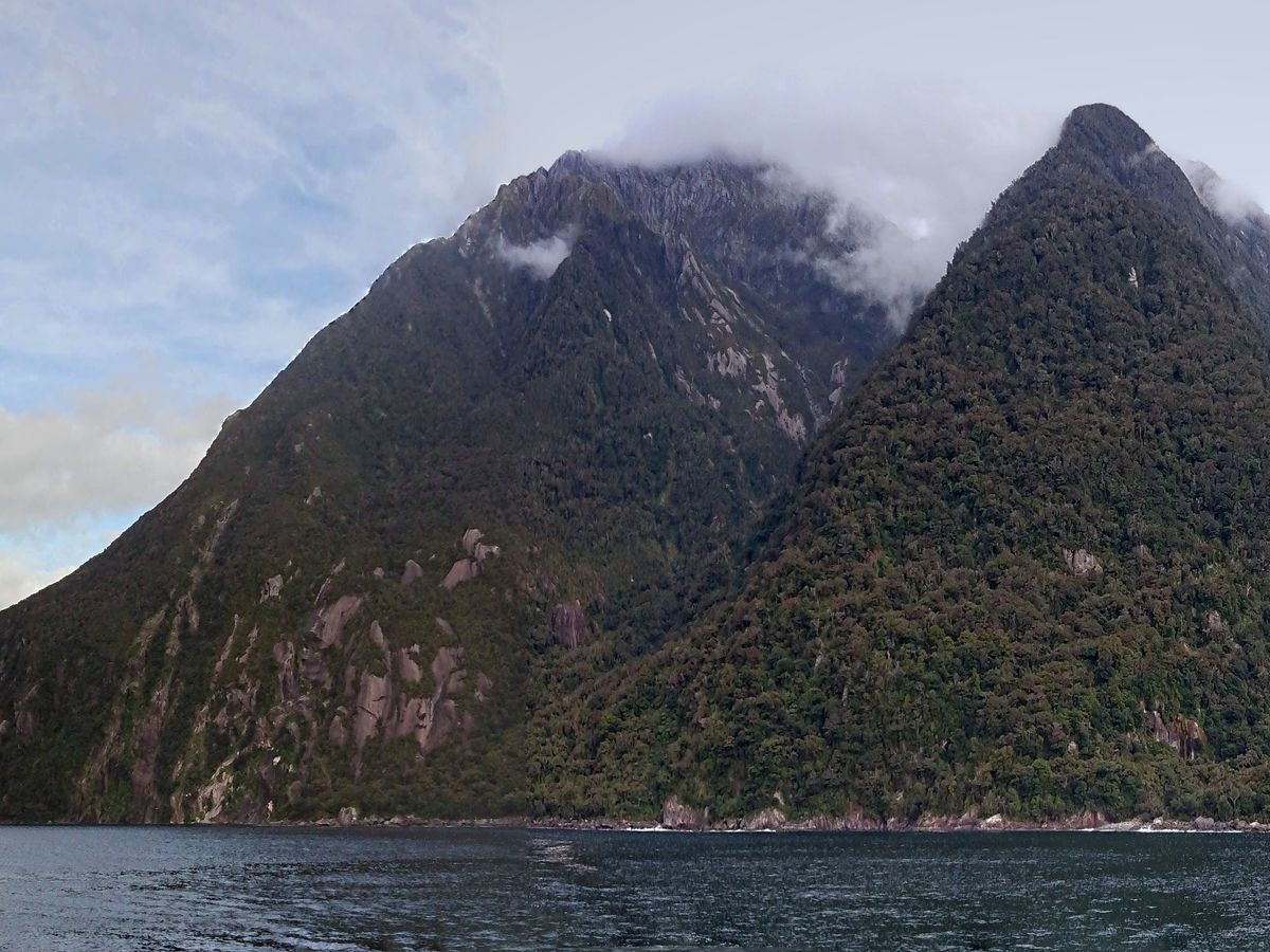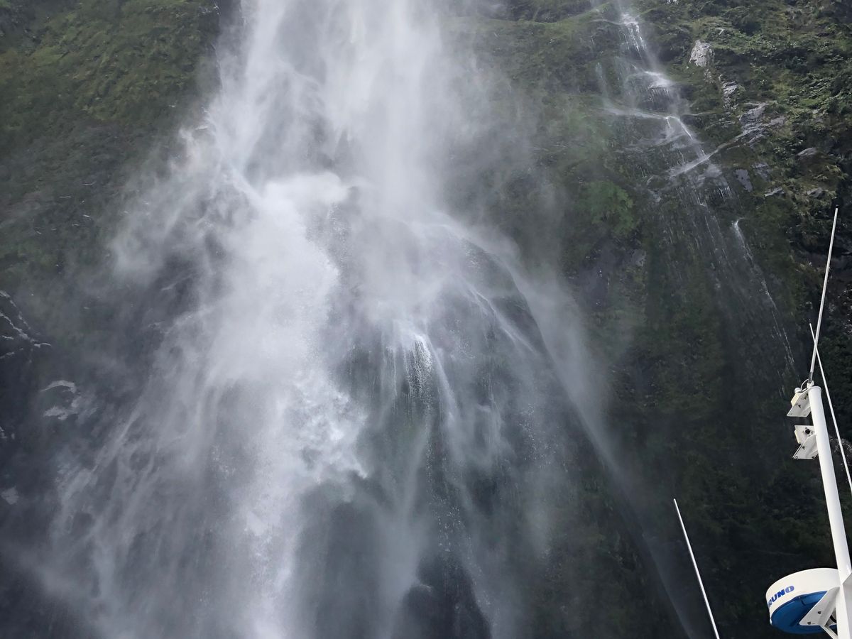 ミルフォード・サウンドのクルーズは快晴ではなかったものの、甲板で楽しめるぐらいの天気にも恵まれ、素晴らしいフィヨルドの景色や、霧や雨のようにかかるぐらいの間近で見られた無数の滝を存分に楽しみました。