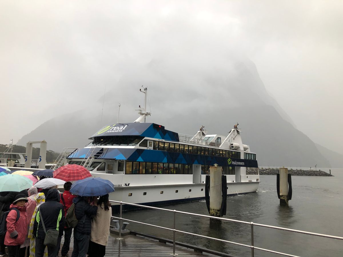 ミルフォードに向かうにつれ大雨と風が強くなり、観光はさんざんでした。途中の写真スポットも最後は降車せずにいたところ、ドライバーが曇った窓を順番に拭いてくれました。少し日本語で冗談を言ったり、雨で沈んだ気分を和ませてくれました。私たちの後のツアーはキャンセルになったという日で、船も揺れ、帰りはバスで酔ってしまいました。綺麗な景色は見れませんでしたが、一緒に行った他の方達とランチしておしゃべりしたり、大雨の中を船が滝に突っ込んだ時にはみんな大盛り上がりで楽しかったです。