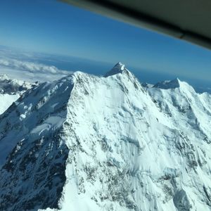 前日は夕方まで雨で夜は強風、中止になるのではないかと心配したが、快晴で壮大な山々、氷河に圧倒された。オーストラリアまで見渡すことができた。私の家族3名と中国からと思われる4人の団体で小型機に搭乗した。インド系と思われるAmitさんがパイロットで、人を押しのけてまで前の席に座ろうとする方々を制して助手席1名とその後ろ2名に私たち家族を振り分けてくれた。英語はキングスイングリッシュでわかりやすかった。なお、翌朝も霧と雲の天気で視界が悪かった。運がよかった。