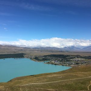 上空から眺めるテカポ湖のエメラルドグリーンの水が素敵でした。