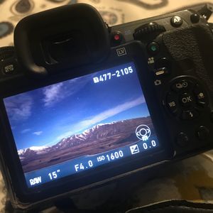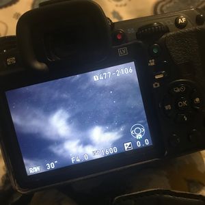 ガイドさんの説明は妻に任せて、持参した三脚にカメラをセットして初めての星空撮影にトライしました。