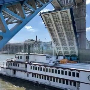予定にないサプライズだったようですが、ロンドンの観光スポット、タワーブリッジの開閉をライブで見ることができました。急ぎの人用にの通路も大変興味深かったです。