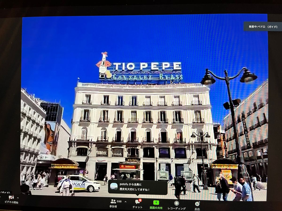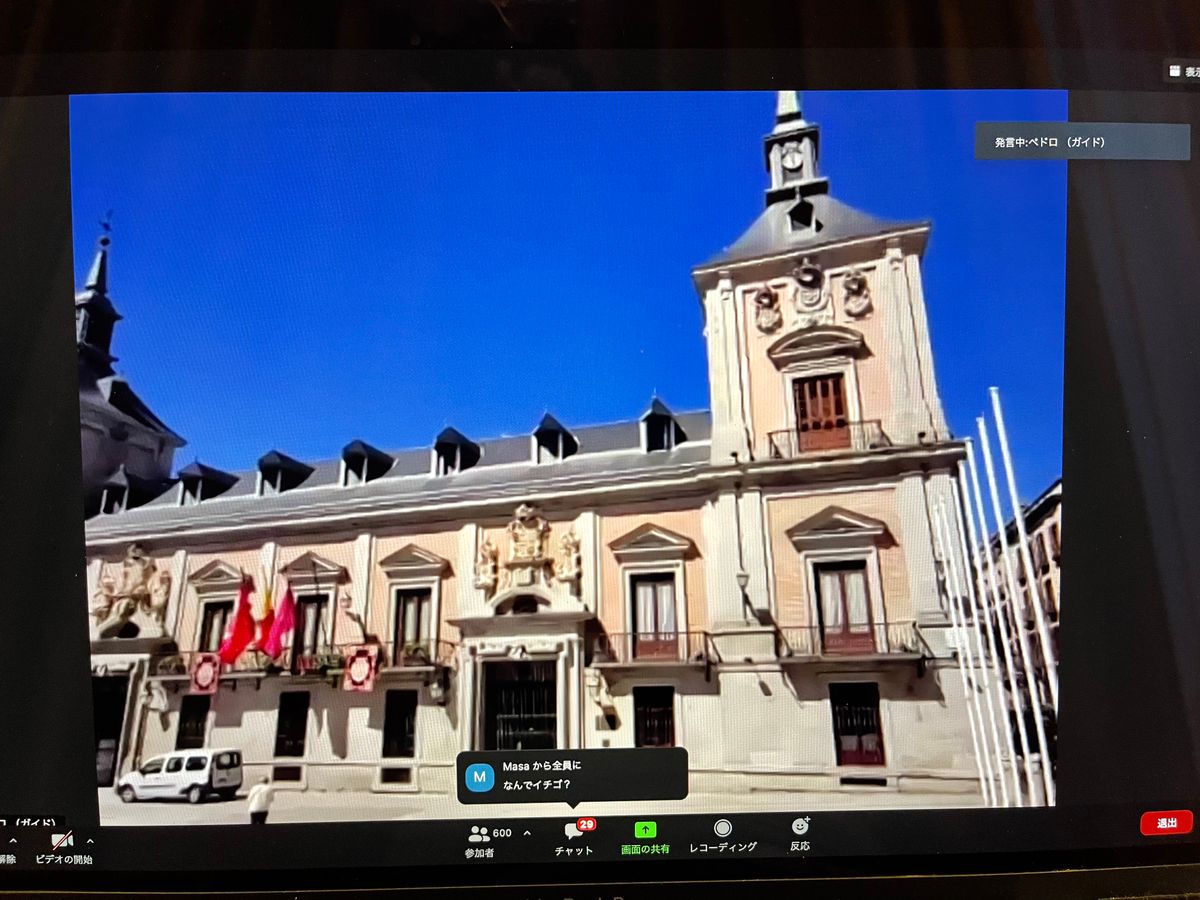 初めてオンラインツアーに参加しましたが、とても楽しかったです。コロナが流行る直前にマドリードに行きましたが、人手は少しずつ戻りつつあるのかな⁈