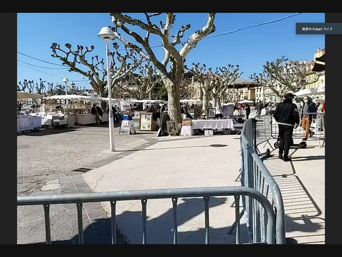 めいめい様。この度は弊社のカンヌオンラインツア-へご参加頂きまして、誠にありがとうございました。ツア-開始時刻より5分程お待ちするのですが、アクセスがなく先にツア-を進めさせていただきましたが、無事にご参加頂き、カンヌのツア-をご満喫頂けました事、とても嬉しく思っております。1時間半という短い時間ですが、カンヌの街の現在の様子、朝市の賑わいをご覧頂き、チャットでも実際一緒にお歩き頂いておるような感覚でお話しが出来、私もとても楽しく過ごさせて頂きました。