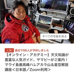 マウイ島訪問の中でも、最高の思い出となった、ハレヤカラ星空ツアーがマジマジと蘇り、また、あの感動を味わいたいと思わせてくれる、とても素敵なオンラインツアーでした。コロナが終息したら、まずは、マウイ島に行きたいかと。