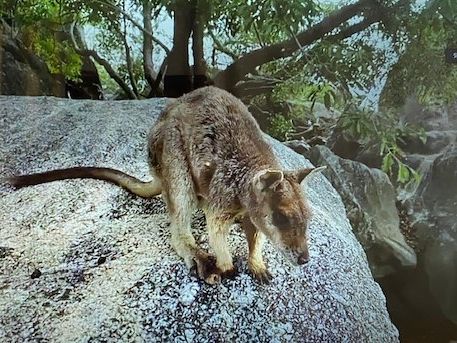 ロックワラビーが近くでじっくり見ることができました。長ーーいまつ毛も観察。