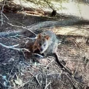 島へ着くとさっそくクウォッカに遭遇!ベンチに座っている観光客の人たちの足元や木陰にいて、葉っぱを食べているかわいい親子クウォッカにも会えました!