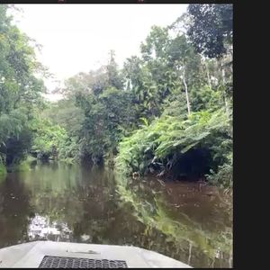 その後も熱帯雨林の中を水陸両用車で進む様子は、