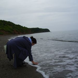 金田一京助が樺太アイヌの子どもたちから樺太アイヌ語を学んだ随筆は、戦前から現在に至るまで日本の教科書に広く掲載されてきました。その舞台はユジノサハリンスクから車で40分ほどの海岸の街、落帆(現在はコルサコフ市レスノエ地区)です。ここは熱源の主人公、ヤヨマネクフ(山辺安之助)が築いた村です。金田一が子どもたちから学んだ浜辺(日本時代の陶器の破片が出ます)、樺太アイヌの少女と水くみにいった小さな滝、樺太アイヌの人々が暮らしていた集落(今はロシア人が住んでいますが)、大群で川を上るサケ、マスなど、興味深い光景を紹介できます。ワシリーさんという詳しい日本語ガイドもいらっしゃいます。