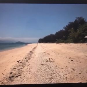 10月31日初めて参加するオンラインツアー、ワクワク!11時パソコンからテレビに接続した大画面に美しい島が映った!青い海の中を亀が泳ぐ様子、素晴らしい島、砂浜、砂浜に続く林には珍しい樹木、親しみやすいコンダクターさん2人に感謝です。