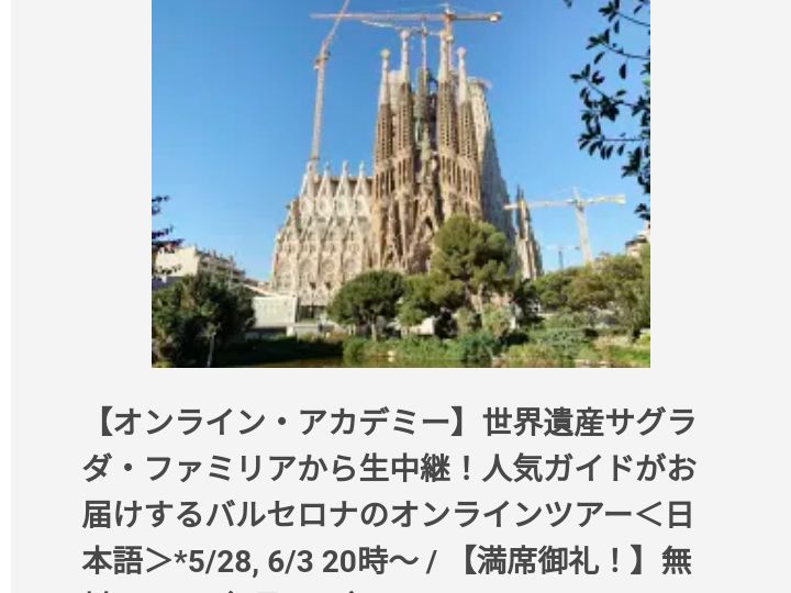 ももも 様 この度は、みゅうオンライン、サグラダファミリア観光にご参加いただきまして、誠にありがとうございます。