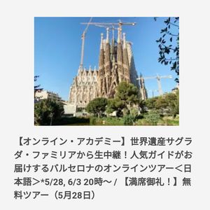 無料の企画をありがとうございました。サグラダファミリアの中には残念ながら入れず、周囲からのライブでしたが、ガイドさんの丁寧な話と知らなかったエピソードも散りばめながらの1時間は、あっという間でした。高校生の娘も初めてのスペイン、そしてサグラダファミリアに興味津々でした。残念な点は、彫刻をもう少しクリアな映像で見れたら…という点です。