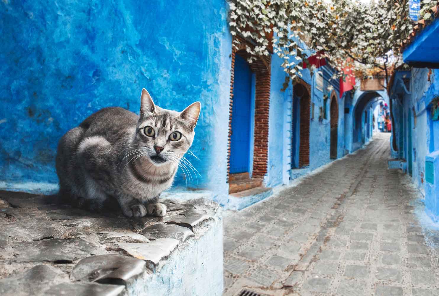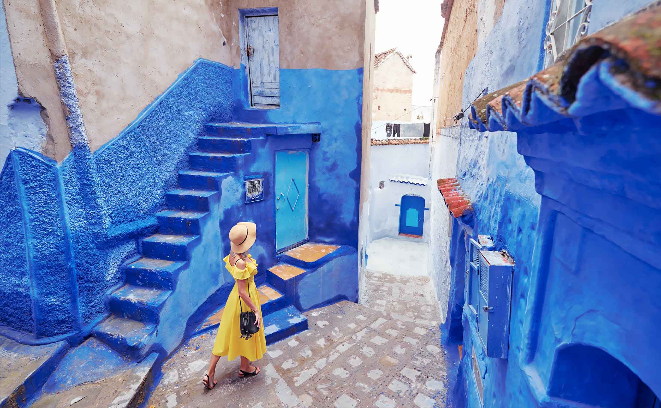 モロッコ北部の山あいにひっそりと佇む小さな街シャウエン。"青い宝石箱"と呼ばれ、右に行っても左に行っても幻想的なブルーの世界が広がります。小一時間でひとめぐりできるので、フェズ発の日帰りツアーでも十分に堪能することできますよ。青一色の小路はもちろん、猫たちがお昼寝する階段も丘の上のモスクも...誘われるがまま隅々まで巡りたい!という方は宿泊ツアーへの参加がおすすめ。吸い込まれそうなほどに青く麗しい街、シャウエンへようこそ。