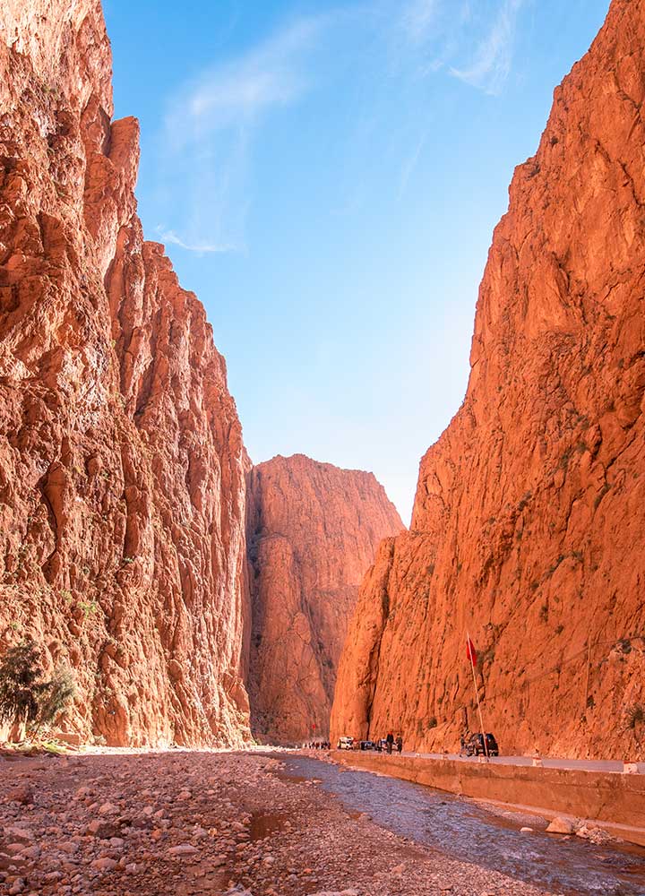 モロッコ旅行最大の目的とも言えるサハラ砂漠への冒険。大砂丘への玄関口メルズーガを出発し、寝床となるキャンプ地を目指します。夢見心地でラクダの背にゆられ、いよいよ迎える感動のサンセット。砂漠の夜はとても静かで、見上げれば満天の星が輝きます。翌朝はちょっと早起きをして、煌めく朝陽のパワーをチャージ。砂漠への道のりは楽なものではないけれど、神々しいアトラス山脈を超えると、そこには異世界が広がります。さぁ、意を決して幻想のサハラへ。