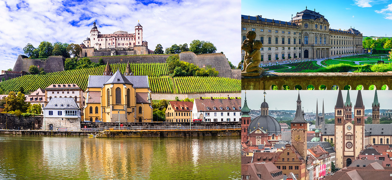マイン川のほとりに広がる、芸術と文化の街、ヴュルツブルク。ロマンチック街道の北の起点となるこの街は、豊かな自然に育まれたフランケンワインで有名。世界遺産に登録されている領主司教の宮殿「レジテンツ」と中世に建設された堅固な要塞「マリエンベルク要塞」は必見です。