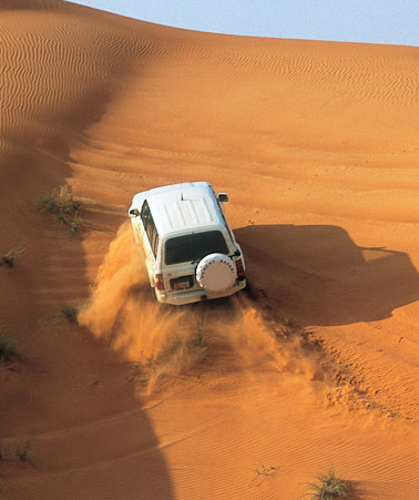 ドバイのビーチやショッピングエリアから車で45分ほど離れると、雄大な砂漠が広がり、遊牧民の生活など、アラビアンナイトの世界を垣間見ることができます。「サンセットサファリ」は、4WDのスリリングな砂丘ドライブに加え、砂漠に沈む夕陽を眺めながらの夕食やベリーダンスの鑑賞などを楽しめます。