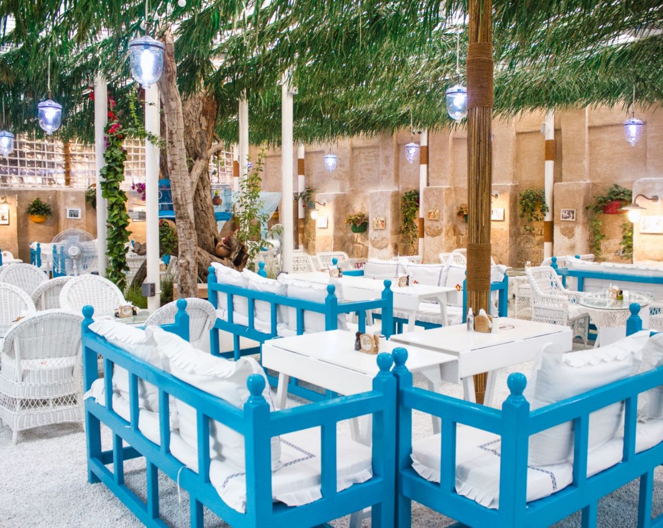 アル・ファヒディ歴史地区にある、まるでリゾートのようなオシャレなアラビアンレストラン。旧市街散策中の休憩にぴったりの場所です。