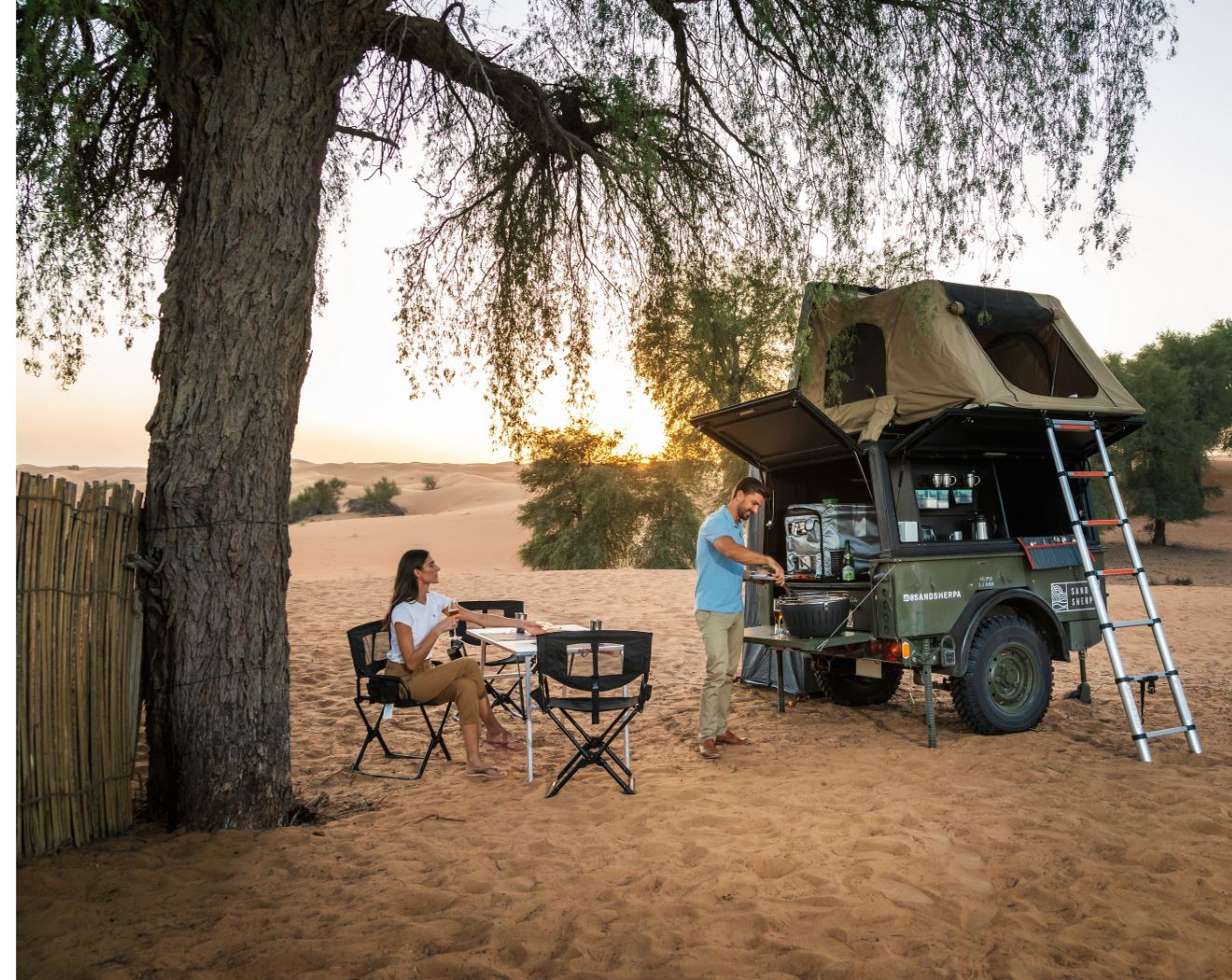 自然の中で2人の時間をゆっくり楽しみたい方には、キャンピングトレーラー貸切で砂漠保護区内でサファリドライブと本格キャンプ体験がおすすめ。数年前から日本でもキャンプ&グランピングが大人気ですが、砂漠でキャンピングカー貸切で楽しめるのはドバイならではの体験。予めお選びいただいたお食事セットでBBQやキャンプファイヤーもお楽しいただけます。砂漠で満天の星空を眺めながら、瞬く炎を囲みながらゆっくりと過ごす時間は格別。