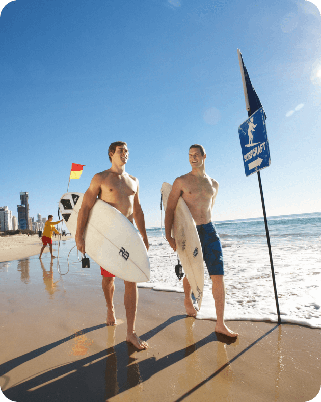 ゴールド・コーストで最も有名なビーチの一つ、サーファーズ・パラダイス・ビーチ。2kmにわたる輝く砂浜と打ち寄せる波が絶好のサーフィンスポットなのはもちろん、気持ちの良い屋外のバーやレストラン、おしゃれなブティックやコスメショップなどが立ち並び、一日中さまざまな楽しみ方ができます。