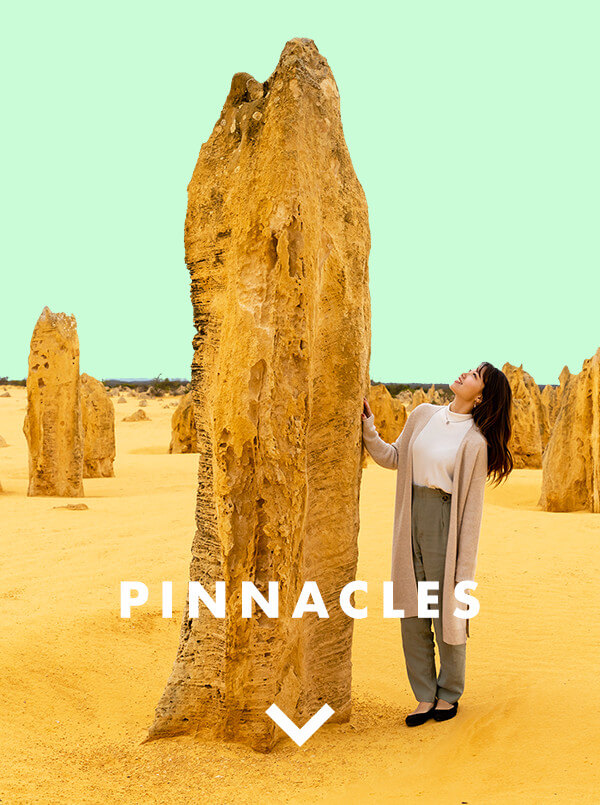 無数の奇岩群が創り出す不思議な光景を目にすることができるピナクルズ。樹木と風雨によって長い年月をかけて侵食された石灰岩が6,000年前に露出し残ったものと言われています。