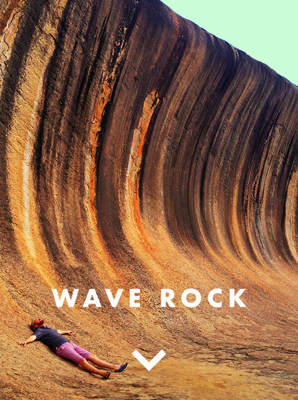 その名の通り、海の波が一瞬で固まったように見えるウェーブロックはパースから南東へ約350km。車で約4〜5時間で到着。
