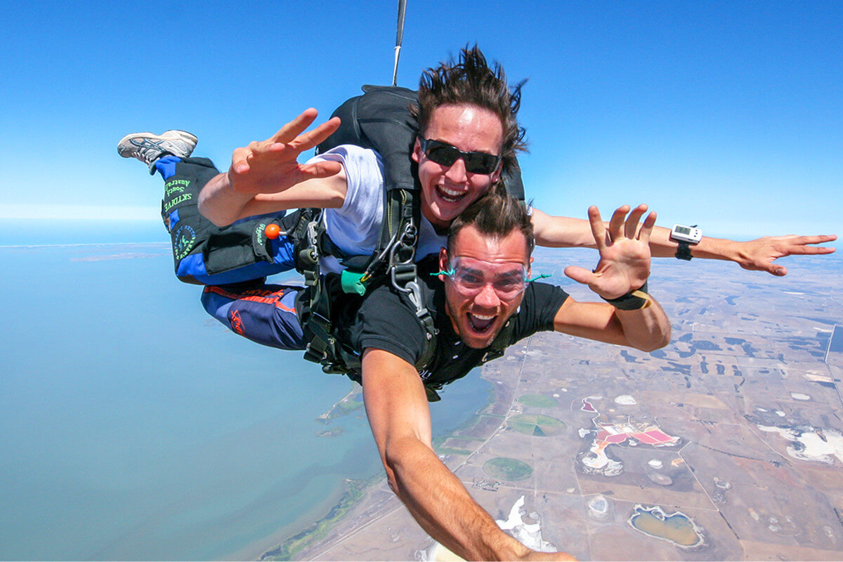 青い海に浮かぶ小さなロットネスト島へ大空からダイブ!上昇する飛行機で最大まで高まった緊張が、飛び降りた瞬間に海の美しさで一気に感動と興奮に転換されます。一生の忘れられない思い出になりますよ。