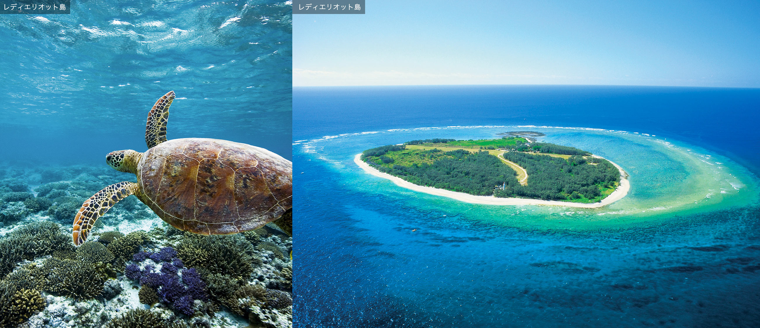 ゴールドコースト空港からセスナに乗り込み、グレートバリアリーフ最南端のレディエリオット島へ。船では行けない、この特別な島では、熱帯魚はもちろん、ウミガメやマンタなど珍しい海の仲間と一緒に泳げることも!