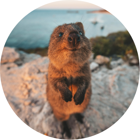 パースから日帰りで行ける人気のリゾートアイランド、ロットネスト島。63もの美しいビーチがあり、遊泳やシュノーケル、サーフィン、釣りなどを楽しむことができます。島内への一般車両の乗り入れは禁止されているため主な移動手段は自転車。海風を浴びながらのサイクリングは最高です!そして、この島の特徴は何といっても野生のクオッカに出会えること!島には1万2000頭以上クオッカが生息しており、至るところで見かけるチャンスがあります。