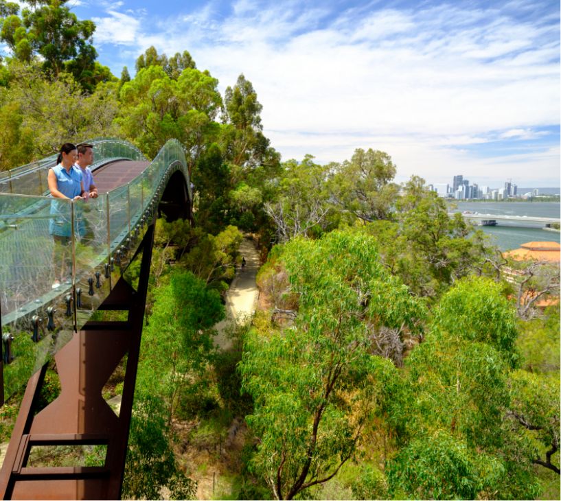 都市にある公園としては世界最大規模で、広大な敷地に芝生や自然のままの森が広がり、まさに都会のオアシス。約3000種もの西オーストラリア固有の植物が植えられたボタニックガーデンは必見です。ガラスでできた遊歩道から、ユーカリの森に囲まれたガーデンやスワンリバーを眺めるのもおすすめ。毎年9月にはワイルドフラワーフェスティバルが開催されます。