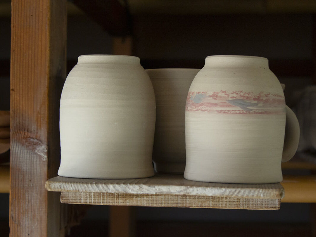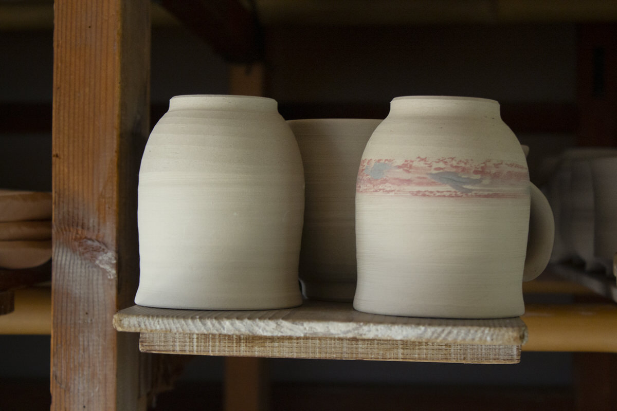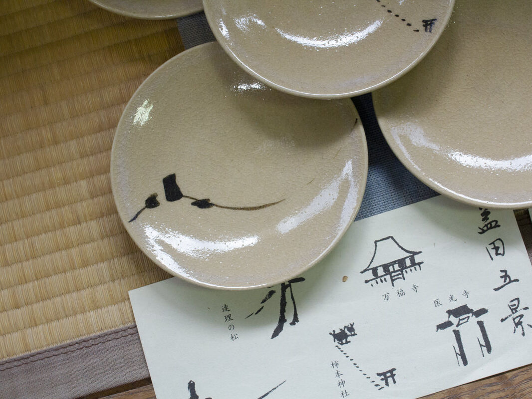 福郷さんが生み出す器は、古陶磁を偲ばせる侘びがありながら、地元益田産の原料を使用した柔らかな色合いの釉薬で色付けされる。丁寧に絵付けされ、不思議な温かい魅力を放つ。使ってみてわかる喜びがある。薄くて軽くて思わずそればかりを選んでしまう。食器棚の中でキラリと光る存在感は独特のものだ。