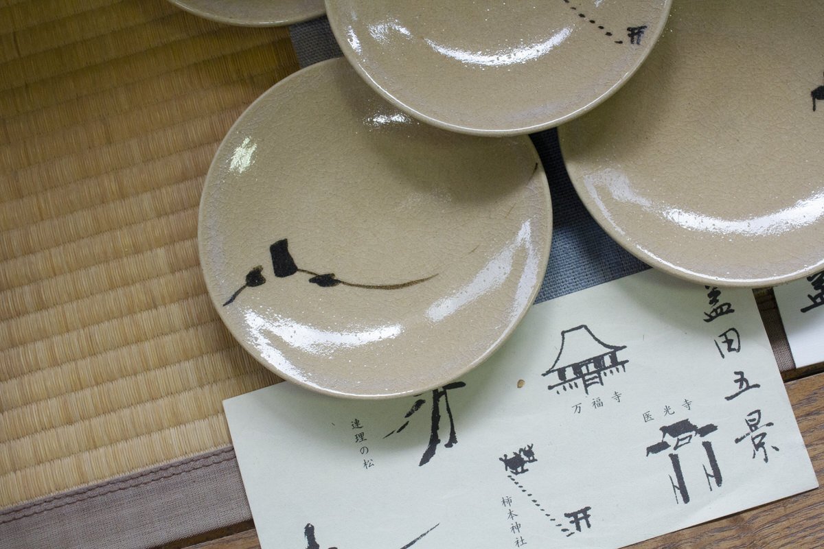 禅の世界を表した「雪舟庭園」の世界観を世に広める目的で作られた雪舟焼。信仰心と心魂から生まれた作品と表現され、雪舟の風流を組んだ高い芸術の雰囲気が漂う。