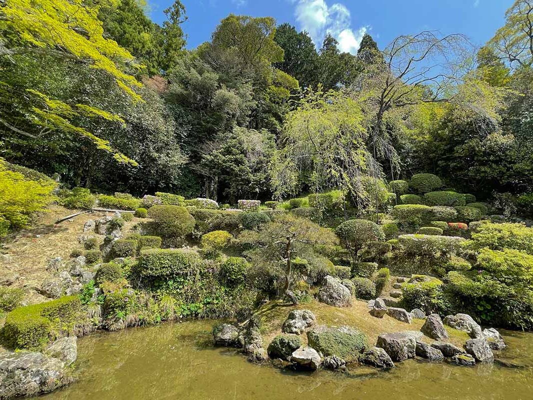 雪舟焼き窯元の隣にあるのが、雪舟庭園を擁する医光寺。春になると圧巻のしだれ桜が、庭園を美しく彩り、多くの人々がこの桜を見に訪れることでも有名だ。京都から何人もの桜守に守られて今年も見事に咲き放った。医光寺とともに萬福寺の庭園も手掛けた雪舟は83歳、この地で生涯を終えた。1955年ユネスコ国際会議で雪舟さんは世界十大文化人に選ばれている。その世界感に浸ってみたい。