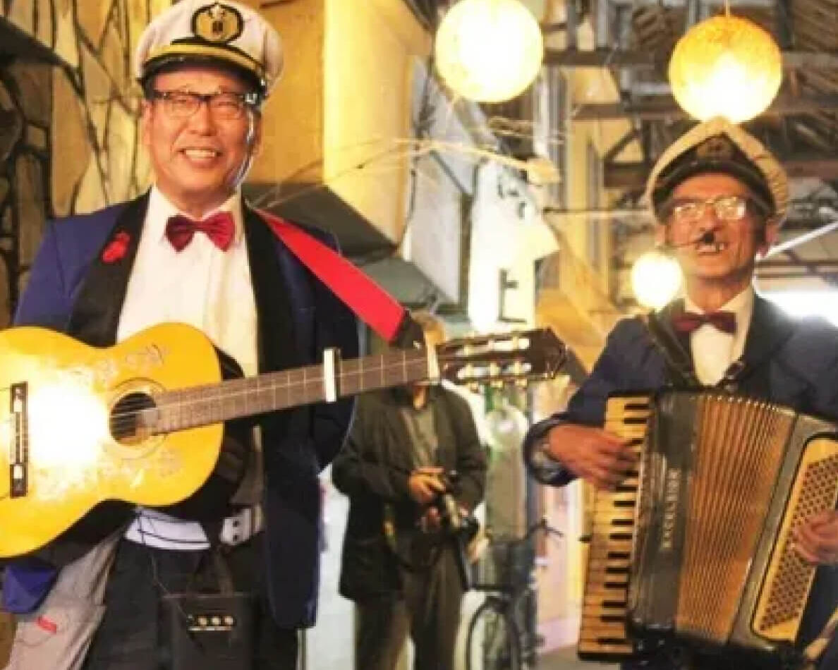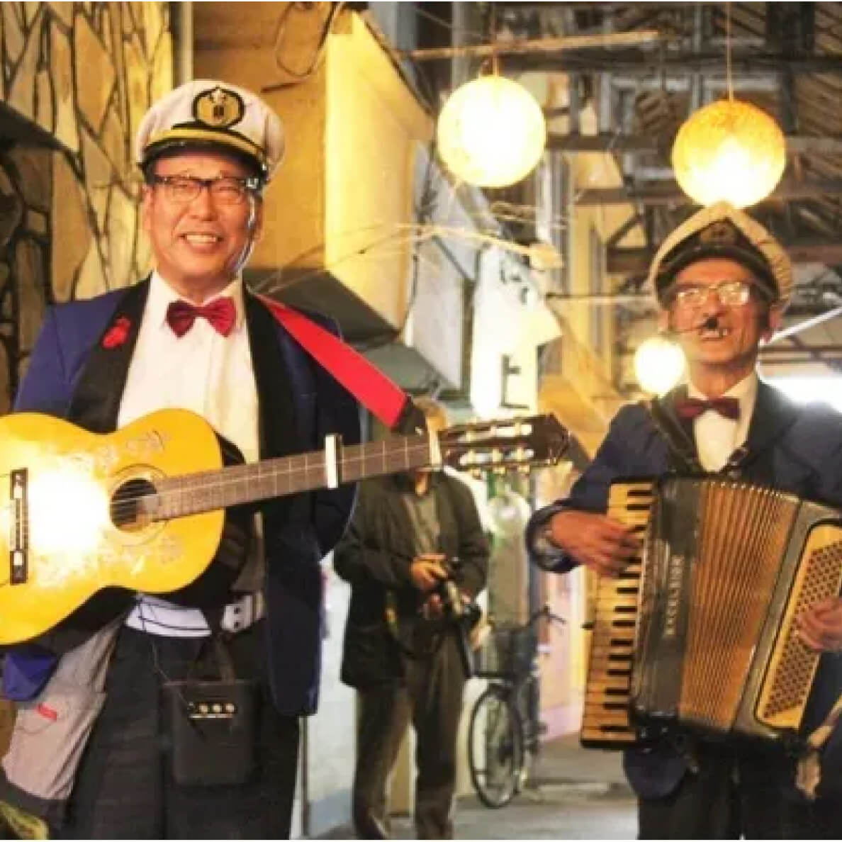 芸歴50年の流しである「はっちゃん・ぶんちゃん」とともに、流しの演奏にのって賑やかに夜の散歩はいかがでしょう。昭和の薫り漂う路地を参加者の皆さまと歌ったり語り合うことで、思いもよらぬ縁や今だけの特別な空間に包まれることでしょう。