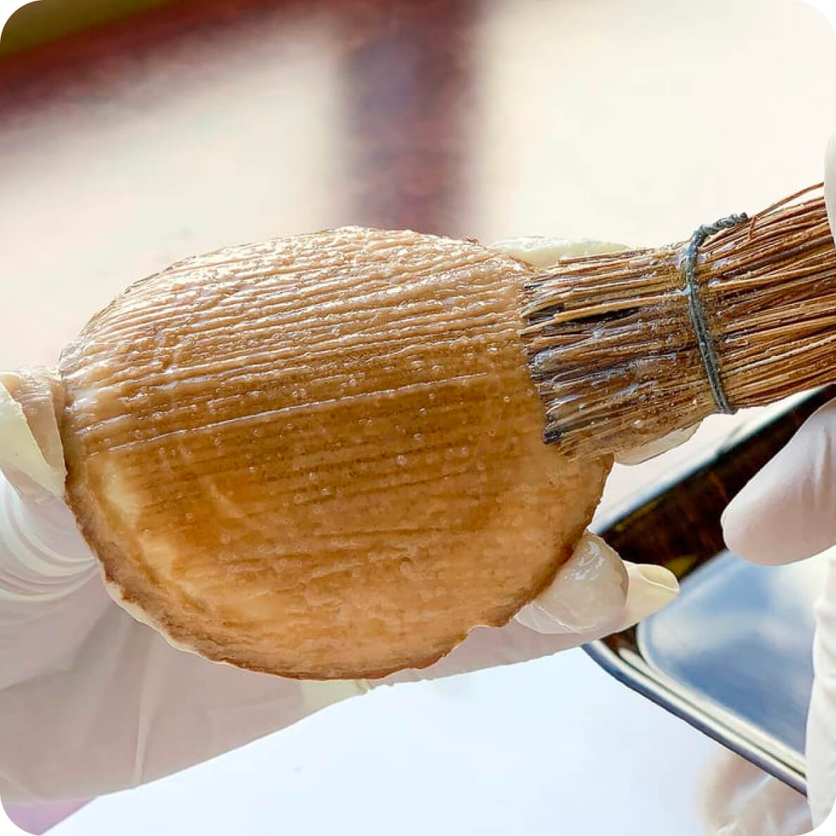 大分県のお土産として長年親しまれている銘菓、「臼杵せんべい」。歴史は臼杵市から始まり、臼杵市は生姜の一大産地であったことから味付けに生姜が加わっています。「臼」のくびれたように曲がった形をモチーフに曲げて焼き、職人が刷毛で一枚一枚丁寧に手塗りすることでその木目を表現していると言われています。臼杵せんべいは一枚一枚手塗りする伝統製法で作られていますが、臼杵せんべいを販売している後藤製菓では実際に「臼杵せんべい手塗り体験」を行うことができます。作ったものはお土産にすることもできるので、実際の銘菓と食べ比べするのも楽しいですよ。