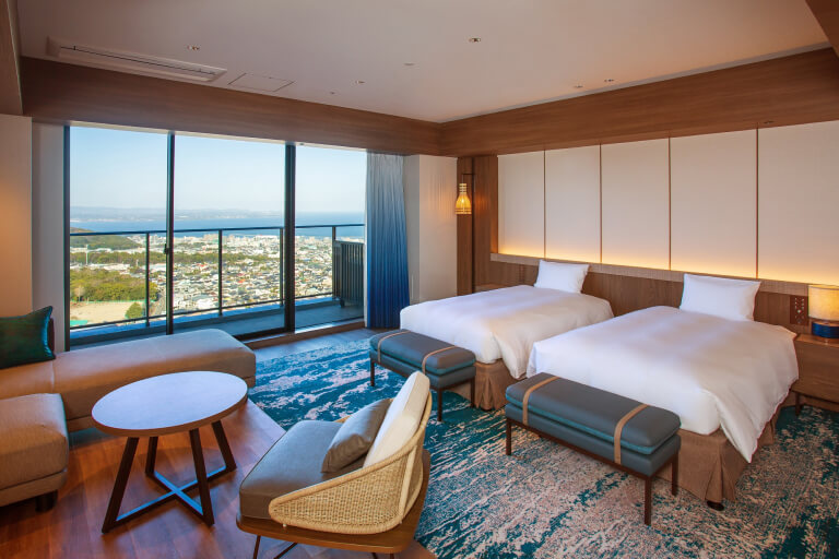 別府温泉屈指の大型リゾートで、さまざまな全国人気ホテルランキングでも上位にあがる「杉乃井ホテル」。2023年1月にオープンし話題の「宙館」デラックス海側客室、TERRACE & DINING SORAでのお食事をお楽しみいただけるプランにご招待!