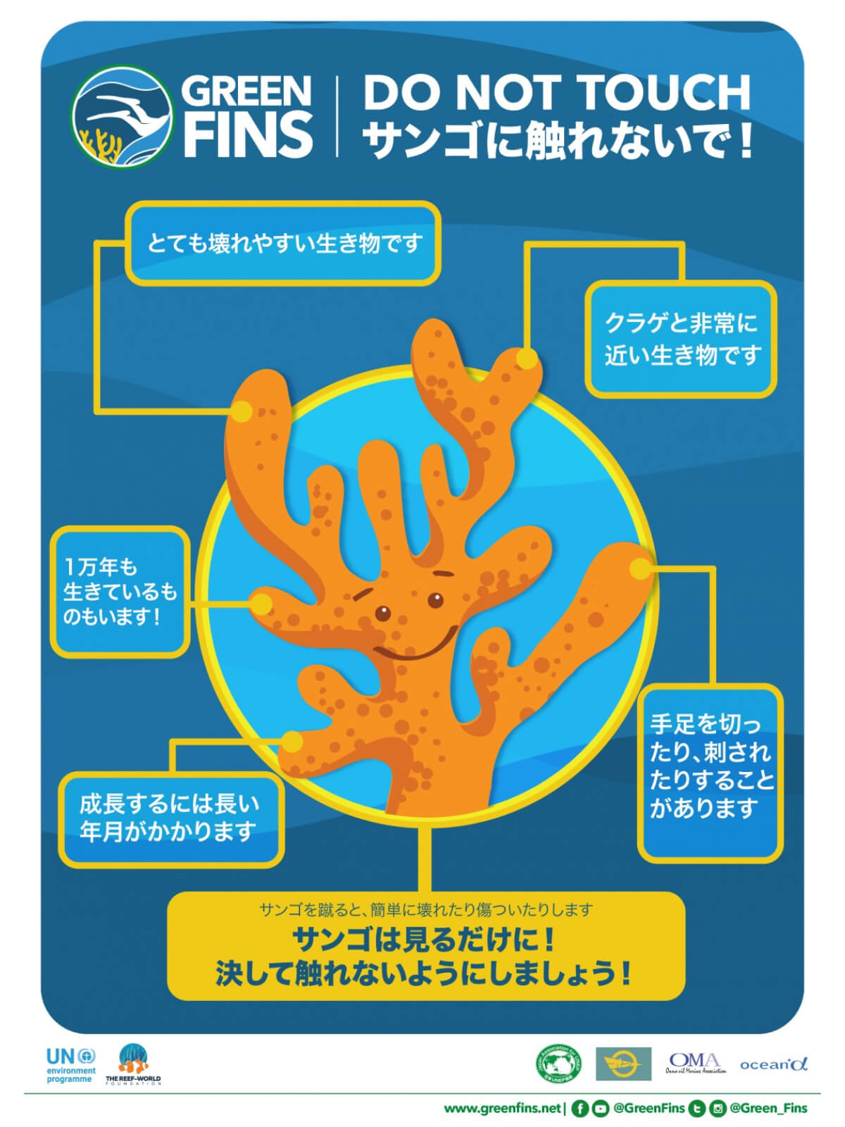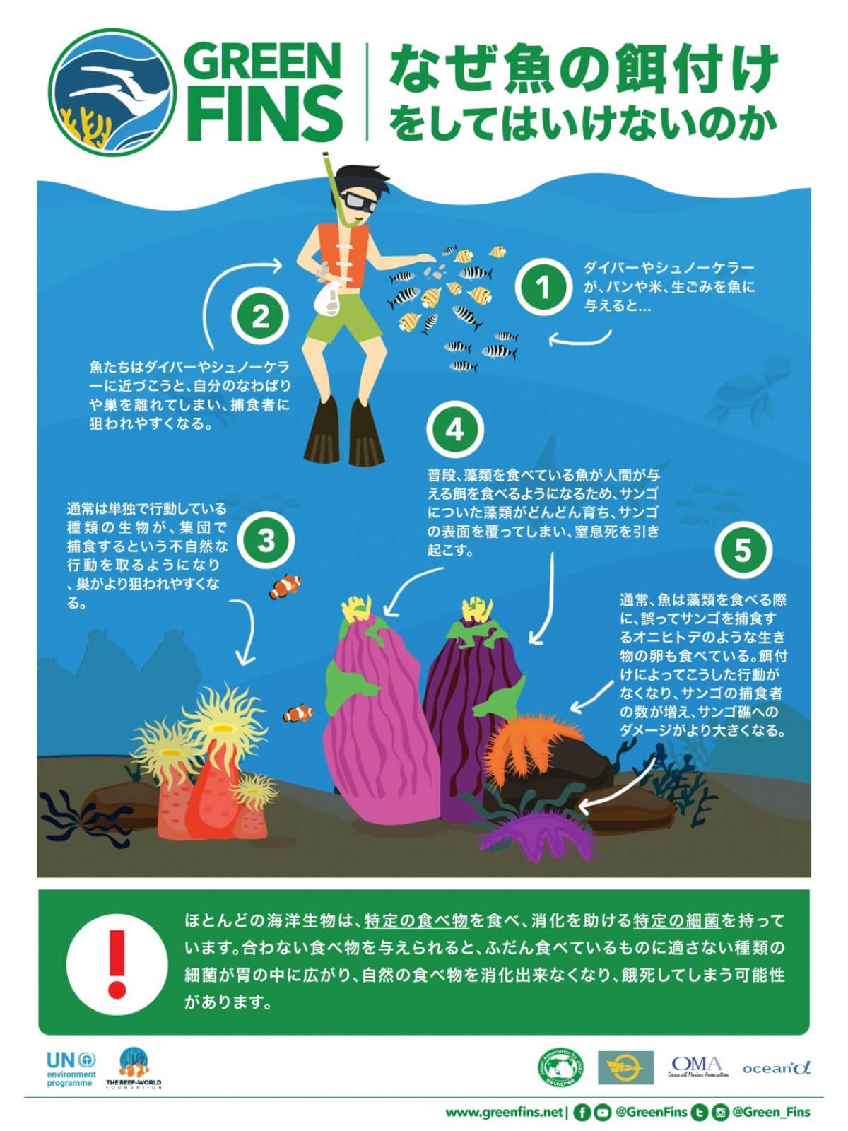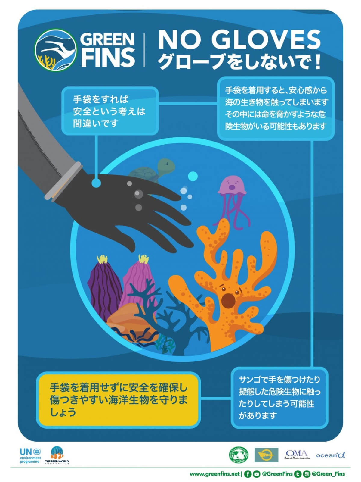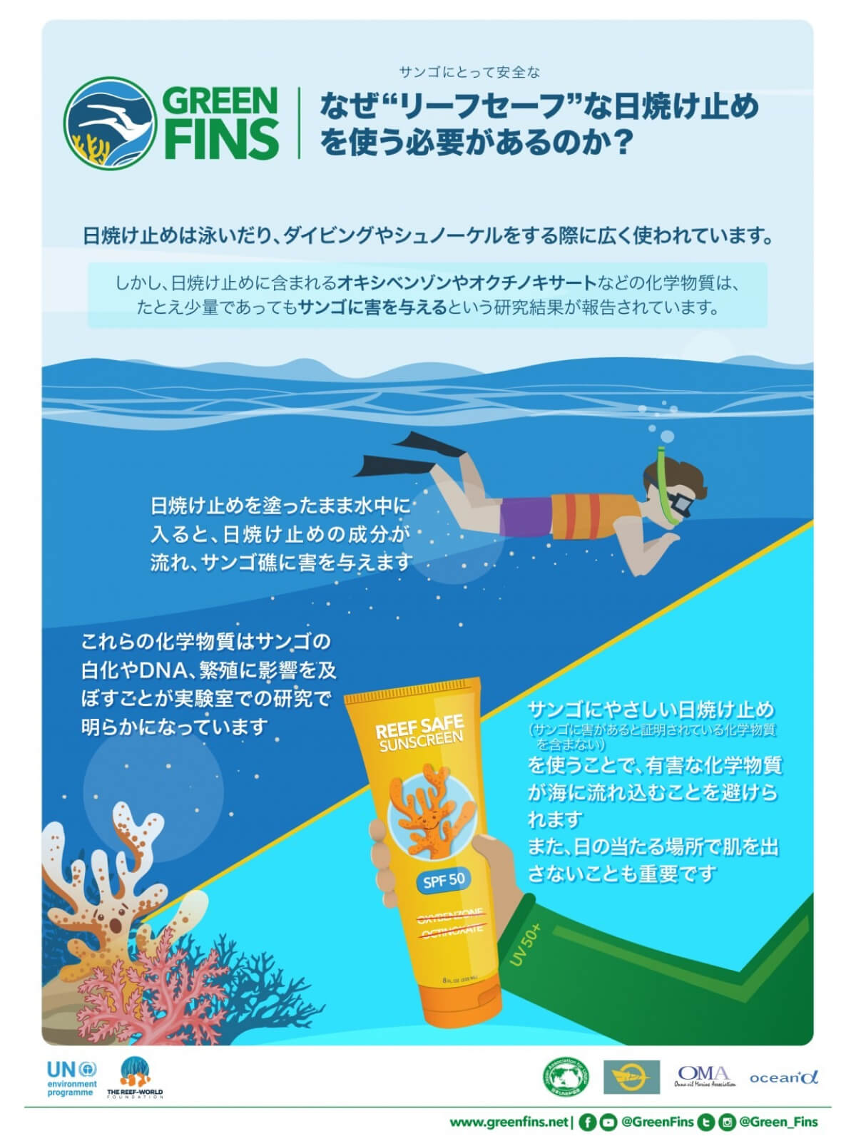 「Green Fins(グリーン・フィンズ)」は、環境にやさしく持続可能なダイビング・シュノーケリングのガイドラインで、UNEP(国連環境計画)とイギリスのReef World財団により制定されました。