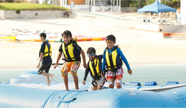 お子様から大人まで楽しめる海上アスレチック「万座オーシャンパーク」や0歳から参加できる人気の半潜水艇「サブマリンJr.II」などご家族で楽しめるアクティビティをご用意。サブマリンJr.IIでは潜水キャビンの中から熱帯魚やサンゴ礁が楽しめます。また、サンゴを守る恩納村ならではの、海中のサンゴ養殖畑もご覧いただけます。参加費の一部はサンゴの保全活動に寄付されるので、楽しみながら自然保護に貢献できるアクティビティです。