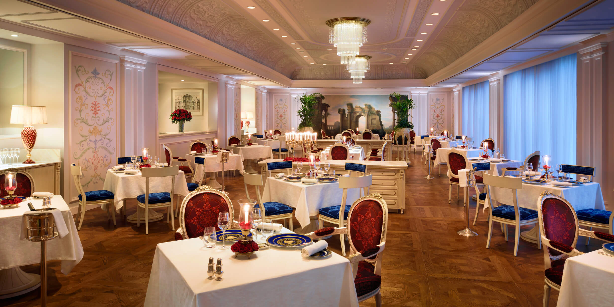 ヴェルサーチェにかこまれて5つ星ホテルで食すイタリア料理