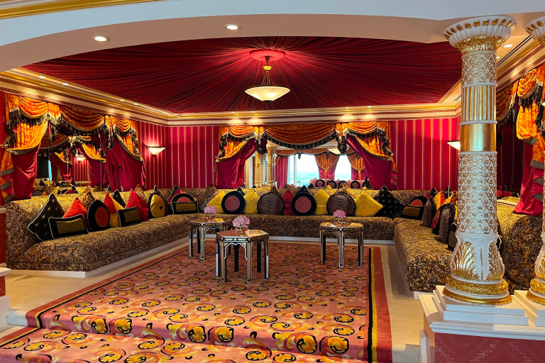 連日満員御礼!普段は宿泊者やレストラン、スパ利用者のみしか立ち入ることのできないブルジュ・アル・アラブの内部を案内する人気のツアーです。世界の要人や王族ご用達の7つ星ホテルを見学できる機会は稀なので、ご予約はお早めに!