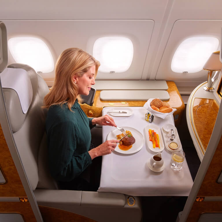 世界を結ぶ架け橋として最高の空の旅を提供しているエミレーツ航空。ファーストクラスでは専用スイートシート、贅沢な食事、心地よいサービスでお客様をお迎えします。