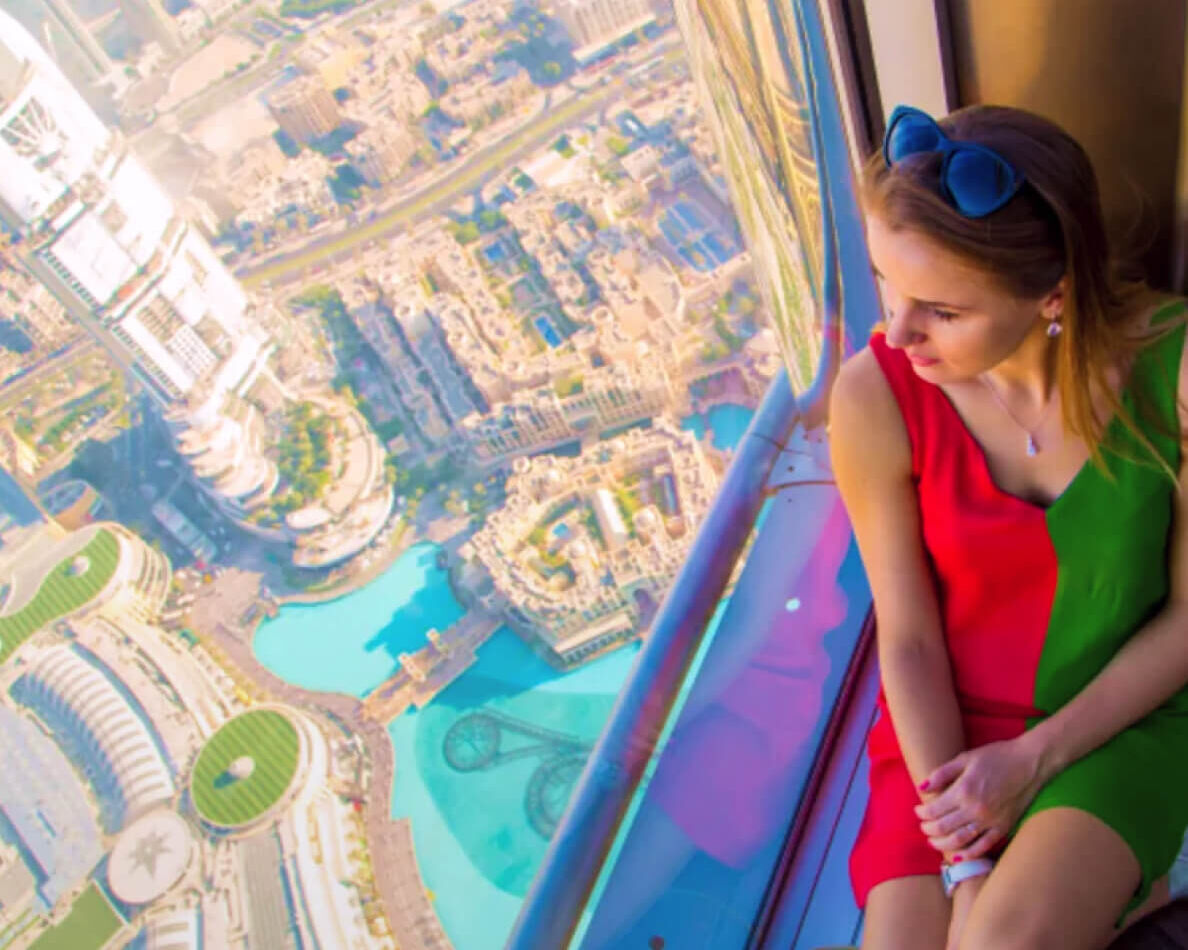 世界で最も高い建造物(高さ828m)でドバイの代表的な観光スポット、ブルジュ・ハリファ(バージュ・カリファ)。展望台「アット・ザ・トップ」では高層ビル郡や砂漠など、360度ここでしか味わえない絶景が広がっています。夕方は地平線に沈む夕日を、夜は眼下に広がるドバイの煌びやかな夜景をお楽しみください。