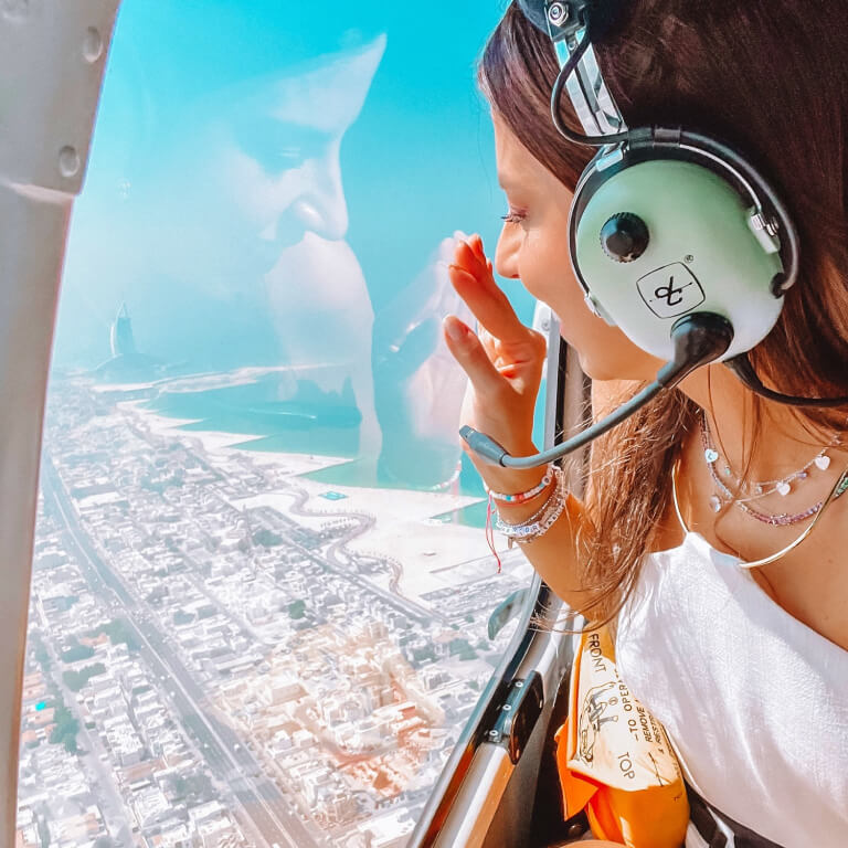 ドバイの数々の名所を上空からダイナミックに遊覧飛行してみませんか?ヤシの木の形をした世界一大きな人工島「パーム・ジュメイラ」など、ドバイの「世界一」があふれるランドマークを巡ります。近未来都市や歴史的なエリアをセレブ気分で空から観光!