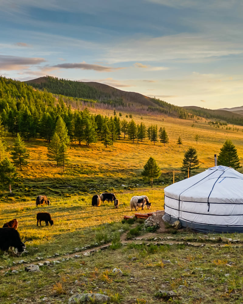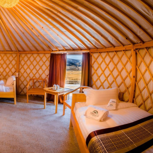 テレルジ国立公園内のゲル(移動式住居)に宿泊して星空観賞を楽しんだり、遊牧民宅を訪問したり、一生の思い出となる体験を。人気ドラマのロケ地巡りで、ゴビ砂漠やウランバートルのスフバートル広場(政府宮殿前)などに訪れるツアーも。