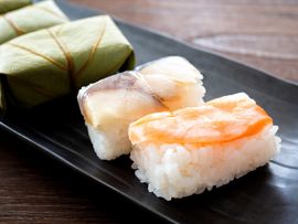 まず、木箱に入っている見た目がとても素敵で、丁寧に葉で包まれた鯖ずしがコロンと並んでいる姿も可愛らしかったです。