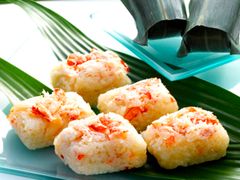 - 【原材料】精白米(国産)、もち米(国産)、ボイルずわいがに(ずわいがに、砂糖、食塩)、蟹エキス、醤油(小麦、大豆を含む)、食塩、なたね油/調味料(アミノ酸)、香料(えび由来)